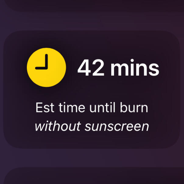 The app offers estimations on time to burn based of the current uv and a selected skin type. Allowing you to understand more easily the dangers of the current levels and plan your day in the sun.